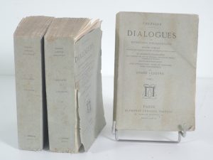 VOLTAIRE, DIALOGUES ET ENTRETIENS PHILOSOPHIQUES, recueil complet, introduction, notes et variantes par ANDRÉ LEFÈVRE, PARIS, ALPHONSE LEMERRE 1828-1831. 3 volIn-12 ,broché, xx, 267 p, xxxi, 257 p, xlvii, 323 p.