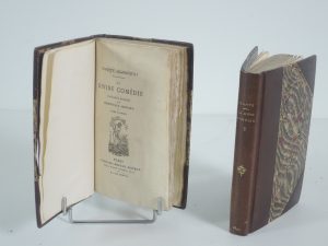 DANTE ALIGHIERI, LA DIVINE COMÉDIE, traduction nouvelle par FRANCISQUE REYNARD, PARIS, ALPHONSE LEMERRE 1877. 2 volIn-12, 28/50 sur chine paraphés par l' éditeur. Frontispice, lxiii, 256 p, 336 p, couv et témoins conservés.