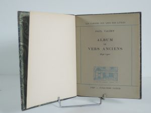 PAUL VALÉRY, ALBUM DE VERS ANCIENS 1890-1900, ADRIENNE MONNIER, PARIS,1920.1 VOL, couvertures conservées. Demi-maroquin dos lisse, tête or, titre en long.