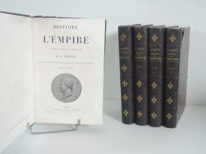 A. THIERS, HISTOIRE DE L'EMPIRE, PARIS 1865. 4 vol, In-4°. Nombreuses illustrations. Demi-chag, titre et fleurons or.