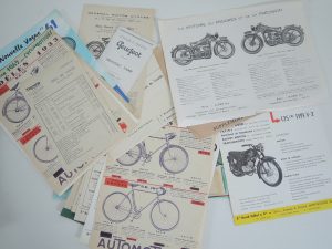 MOTOS et CYCLOMOTEURS : MAGNA DEBON 1954, TERROT, MONET ET GOUJON, environ 58 documents.