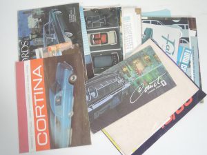 AMÉRICAIN, ANGLAIS, VOITURES : CORTINA, ANGLIA ET PERFECT, CORNET, MERCURY, FORD, WOLSELEY… Environ 40 doc.