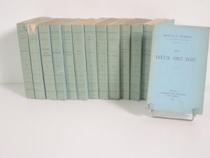 COLLECTION BLEUE : CALMANN-LEVY 1924-1926, ANATOLE FRANCE, 13 TITRES, THAIS, LE PETIT PIERRE, LES CONTES DE J.TOURNEBROCHE, LE MANNEQUIN D'OSIER, LES DIEUX ONT SOIT...13 vol brochés. In-12. Bon état malgré un dos écorché.