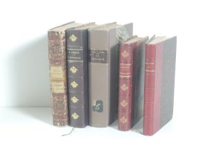 5 VOL RELIÉS : DIVERS : ŒUVRES DE CHAMFORT, BRUANT, dans la rue, P. L'HERMITE, L'EMPRISE, F. CHAMPSAUR, L'ORGIE LATINE, F.FABRE, LE CHEVRIER. État moyen.