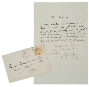 Georges BIZET. 1838-1875 - Compositeur. L.A.S. à Deschanel fils. Paris, 27 octobre 1874. 1 pp. bi-feuillet in-8, avec son enveloppe.