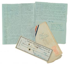 JOINT un chèque de la Garanty Trust Company of New-York d'un montant de 400$ d'Ernest Hemingway à son ami Roberto