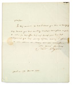 Niccolo PAGANINI. 1782-1840 - Compositeur, violoniste italien. L.A.S. à Gottfried-Engelbert Anders. 1 pp. bi-feuillet in-4, adresse au verso, marque postale ; petite déchirure.