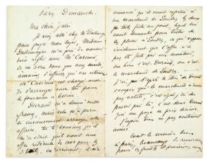 Il lui annonce qu'il est allé payer son loyer chez Dallemagne et poursuit; Mais Durand lui a affirmé que le marchand n'avait pas acheté ; Il donne des nouvelles, mentionnant Frédéric, Nini, etc.