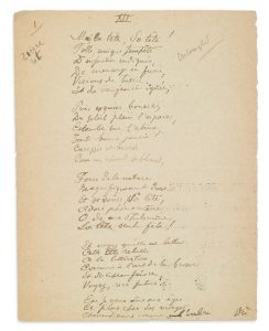 Partie d'un poème (5 strophes) qui paraitra dans le recueil édité par Vanier en 1893.
