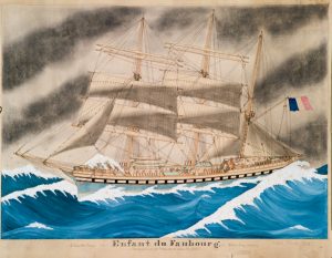 Aquarelle enfant du Faubourg, voilier long courier signée Paul-Émile Pajot