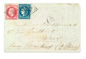 BOULE DE MOULINS - Lettre d'Arcachon postée à Bordeaux affr. n°32, 80c lauré et n°45, 20c janvier 71). Sans cachet d'arrivée.
