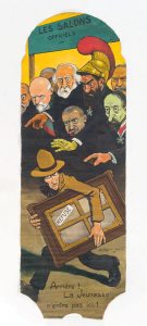 CHAPRON Jean - les Salons officiels: Arrière ! La jeunesse n'entre pas ici. Huile sur toile sans châssis. 220 x 77 cm. Craquelures. Signée en bas à droite.