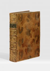 In-4, veau jaspé, triple filet doré, dos orné, filets sur les coupes, tranches marbrées (Reliure de l'époque).