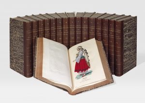 ► Exceptionnel exemplaire avec les figures coloriées en reliures uniformes signées de Bruyère, d'une élégante sobriété.