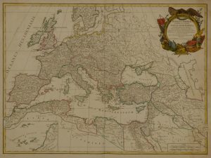ROBERT DE VAUGONDY (Didier). Romani imperii, occidentis scilicet et orientis tabula geographica. [1752]. Carte gravée avec les liserés coloriés (480 x 655 mm).
