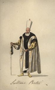 D'une jolie exécution, chaque aquarelle est montée sur papier bleu et légendée à la plume : Turkish Officer, Prime Minister, Turkish Admiral, Sultan à la militaire, Dervish, Minister for Foreign affairs, Priest, The Princess, Turkish soldier, etc.
