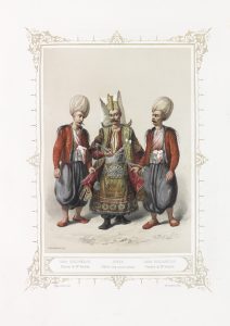 Ces planches représentent des costumes de grands dignitaires turcs sous le règne de Mahmout II (1808-1839). There was in fact an actual museum of costume in Contantinople called the Elbicei Atika.
