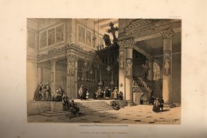 Luxueuse édition, la seconde de ce superbe ouvrage, illustrée de 248 (sur 250) planches hors texte lithographiées par Louis Haghe d'après les dessins de David Roberts (dont 6 titres-frontispices, 2 cartes et un portrait), tirées en deux tons et rehauts de blanc sur chine appliqué.