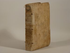 cartonnage de papier crème, titre manuscrit au dos (Reliure de l'époque).