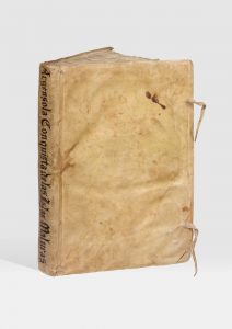 vélin souple à recouvrements, lanières d'attache (Reliure de l'époque).