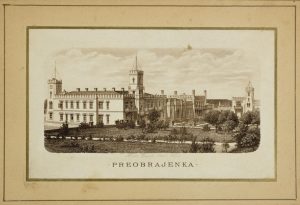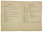 Preobrajenka. Carte de menu au chiffre de la baronne Sophie Falz-Fein. 10,5 x 16 cm. ...