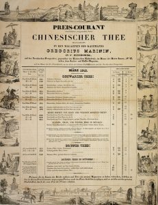 Prix-courant des thés vendus chez Georges Marinine à Saint-Pétersbourg.