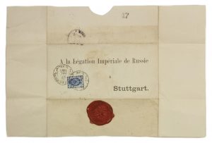 .... ЛАМСДОРФ, Владимир Николаевич (также Ламздорф или Ламбсдорф; 1844-1907), граф Русский дипломат из остзейского дворянства, министр иностранных дел Российской империи в 1900—1906 годах. письмо-конверт:в имперАторскую дипломАтиЧескую миссию россии в штутГАрте с собственноруЧной подписью в. лАмсдорфА. СПб. 1884г. 1 сложенный в виде конверта лист. Бумага с водяными знаками. Сургучная печать. Марка Почты России за 7 коп 3 почтовых штемпеля. Сургучная печать Министерства Иностранных Дел отлично сохранилась.