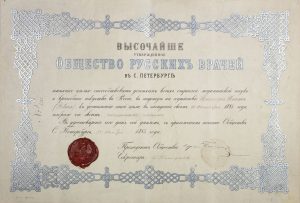 BOTKINE, Serge Petrovitch (1832 -1889). Diplôme de membre de l’Association des médecins russes attribue à Pierre Potain. 1883...