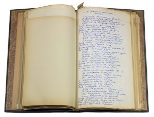Recueil de chansons militaires russes. Tapuscrit d’un livre. АНДОЛЕНКО Сергей Павлович (1907-1973), генерал «Сто крат священ союз меча и лиры». Переплет. Машинопись. Черный и синий шрифт. Часть стихов написана от руки. Листы разного формата Около 200 листов. О России. - Поэмы и песни, посвященные войнам и сражениям (49 стихов). – Полковые песни, марши и стихотворения (126 стихов). – Вожди (10). – Казачьи (12). В 1972 г. в Париже Обществом Ревнителей Русской военной старины был издан сборник С. Андоленко «Сто крат священ союз меча и лиры», 40 стр. Провенанс: экз. из собрания генерала С. Андоленко.