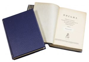 Traduites de l’anglais par Vladimir NABOKOFF. Berlin, Slovo, 1922. - 2 vol. in-8°. АЛЕКСАНДРА Феодоровна (императрица; 1872-1918) Письма императрицы Александры Федоровны к императору Николаю II / Пер. с англ. В.Д. НАБОКОВА. Берлин : Слово, 1922. - 2 тт.; 20 см. Т. 1. - [4], 641 + [5] с. вклеек. Т. 2. - 496 с. В 2-х симпатичных перкалиновых переплетах с зол.тиснением по корешку. Форзацы их орнаментирован. бумаги. Обрезы «под мрамор». Влад. инскрипт: «А. Петровъ». В конце 1-го тома вклеены вырезки из рус. эмигрантских газет. В издание вошло около 400 писем Александры Федоровны к Николаю II, которые охватывают период с июля 1914 по 17 декабря 1916 гг. Их большая переписка связана с частыми отъездами императора. Во втором томе именной указатель, сами письма дополнены многочисленными примечаниями. Очень достойная переводческая работа отца знаменитого писателя. Провенанс: Игумен Афанасий (в миру ПЕТРОВ Александр Александрович; 1892 – конец 1960-х).