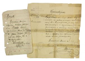 Подборка из двух пропусков-удостоверений для военных музыкантов. 1918-1919 гг. Один из них относится к Белой армии, другой - на бланке 2-го Сибирского стрелкового интернационального полка (Подпись командира полка Ф.Л.Лаврова, анархиста, погибшего в 1919 г.).