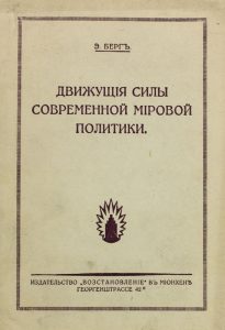 Les forces motrices de la politique mondiale. Munich, 1922. БЕРГ, Эрнст (1888-?) Движущие силы современной мировой политики. Мюнхен : Восстановление, [1922]. - 74, [1] с.; 23 см. - Изд. обложка. Брошюра откровенного расистского, антисемитского содержания. Редка.