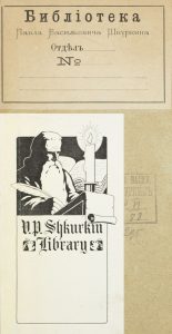 Recueil des œuvres des membres de la Mission Orthodoxe Russe à Pékin. Saint-Pétersbourg: V tip. Shtaba Voenno-uchebnykh zavedenii, 1852. Octavo. [5], 489, [2] pp. One folding chart. Contient, entre autres, «La Vie de Bouddha» du père Palladi (Kafarov). Exlibris Paul CHKOURKINE (1868-1943), sinologue russe. [ШКУРКИН Павел Васильевич (1868-1943) - автограф] Труды членов Российской духовной миссии в Пекине. - Т. 1-й. Санкт-Петербург: в тип. Штаба военно-учебных заведений, 1852. - [5], 489, [2] с.; 23,5 см. - В составном переплёте эпохи (потёртости, отход передней крышки, частичный отход корешка). Плетеное ляссе. С раскладной таблицей народонаселения Китая с 1749 по 1842 гг. Издание остановилось на т. 4. На тит. листе инскрипт и штемпельные экслибрисы П.В. Шкуркина; его же фигуративный книжный знак на форзаце. В наш том вошли работы В. ГОРСКОГО (Начало и первые дела Маньчжурского дома; О происхождении родоначальника ныне царствующей в Китае Династии Цин и имени народа Маньчжу), И. ЗАХАРОВА (Историческое обозрение народонаселения Китая), И. ГОШКЕВИЧА (Способ приготовления туши, белил и румян у китайцев) и знаменитое «Жизнеописание Будды» Архимандрита ПАЛЛАДИЯ (Петра КАФАРОВА). Редка. Провенанс: ШКУРКИН Павел Васильевич (1868-1943). Русский китаевед. Родился в городе Лебедин Харьковской губернии, сын офицера. Офицер Русской императорской армии, участник Русско-японской войны. С 1913 года жил и работал в Харбине. Умер в США.