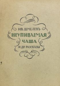 Le calice inexhaustible. Prague: Plamja, 1924. ШМЕЛЕВ, Иван Сергеевич (1873-1950) Неупиваемая чаша и другие рассказы. Прага : Пламя, 1924. - 218 с.; 18 см. - Изд. илл. обложка. Неразрезанный экз.
