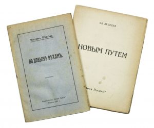 Sur un chemin nouveau. Prague: Volia Rossii, 1923. ЛЕБЕДЕВ, Владимир Иванович (1884-1956) Новым путем. [Прага] : издание "Воли России", 1923. - 190, [1] с.; 20 см. - Изд. обложка. Неразрезанный экз. Путевые записки бывшего помощника Керенского и участника белого движения. С 1919 жил в эмиграции, сначала в Париже, а с 1921 года в Праге, где сотрудничал в журнале «Воля России». В 1922 провел три месяца в Болгарии для изучения закона о трудовой повинности: «Три месяца, проведенные мной в этой стране … открыли передо мной совершенно новый, оригинальный мир...»
