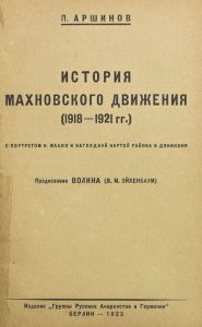 Histoire de la mouvance de Makhno. Berlin, 1923. АРШИНОВ, Петр Андреевич История махновского движения (1918-1921 гг.) : с портретом Н. Махно и наглядной картой района и движения / предисл. Волина (В. М. Эйхенбаум). Берлин : Изд. "Группы Русских анархистов в Германии, 1923. - 258 с.: портр., карт.; 19 см. - Ц/коленкоровый владельческий переплет. Блок слабоват. Редка!