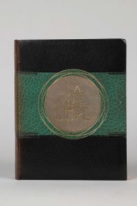 BOFA (Gus). La voie libre. Notes de tourisme syncopé. Paris, Au Moulin de Pen Mur, 1947. Petit in-4, maroquin vert bronze, mosaïqué de vert olive, dos lisse, auteur et titre dorés, titre doré au plat supérieur, dans un cercle de maroquin crème...