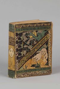 lacets imprimée ornée de tissu brodé (manques et déchirures à la couv. et chemise, débroché).