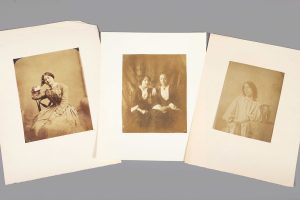 Photographe non identifié. Jeune femme à la tunique à côté d'une céramique de Jules Ziegler. Portait de jeunes femmes, c. 1850. 3 épreuves sur papier salé montées sur carton. 13,7 × 10,6 à 15,2 × 12,5 cm. Provenance : Fonds issu de...