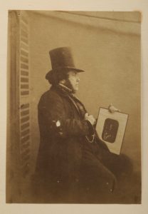 Photographe non identifié. Jules Ziegler portant le portrait de Napoléon III réalisé par Gustave Le Gray, c. 1852. Épreuve sur papier salé-albuminé montée sur papier fort. 15,4 × 10,7 cm. Une épreuve similaire sans attribution est...