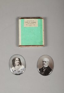 Alcide LAFON DE CAMARSAC (1821-1905). André Giroux et son épouse, 1869. 2 émaux photographiques. Signature du photographe et dates aux versos. 4,8 × 3,8 cm. Provenance : Fonds issu de l'union de Louise Giroux, fille d'André Giroux, et Gustave...