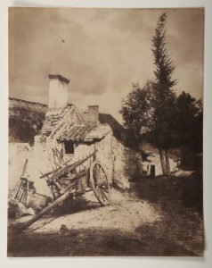 André GIROUX (1801-1879). Charrette à foin devant un corps de ferme, circa 1856. Épreuve sur papier salé contrecollée sur papier fort. Timbre sec du photographe en bas de l'épreuve. 27,4 × 21,5 cm. Provenance : Fonds issu de l'union de Louise...