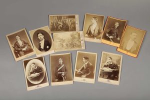 10 épreuves sur papier albuminé au format carte cabinet contrecollées sur carton de photographe.