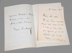 Théodore ANNE (1797-1869), dramaturge. Une lettre. - Alexis AZEVEDO (1813-1875), critique musical. Une citation autographe. - Justinien, vicomte CLARY (1816-1889) puis 3e comte Clary (1889-1896), député du Loir-et-Cher (1849-1850) et membre du corps législatif (1852-1869). Une Lettre. - René COTY (1882-1962), président de la République (1954-1959). Trois courriers de remerciements adressés à Lucien Rouland. - Georges DARBOY (1813-1871) vicaire général de l'archevêché de Paris. Une lettre. - Jean-Baptiste DUMAS (1800-1884) membre de l'Académie française, secrétaire perpétuel de l'Académie des Sciences. Cinq lettres dont une copie (seule datée, de 1881). - Aimé-Stanislas DARBLAY (1794-1878). Deux lettres. - Jean-Joseph DAMAS-HINARD (1805-1891), avocat et traducteur de théâtre espagnol. Une lettre. - Paul DALLOZ (1829-1887), juriste et auteur. Deux lettres. - Napoléone DAVOUT, comtesse Armand de CAMBACÉRÈS (1807-1885). Deux lettres dont une demandant que Joseph Vigier, petit-fils du maréchal Davout, obtienne le droit de relever et de faire usage de son nom. - Gal Claude Théodore DECAEN (1811-1870). Deux lettres. - Claude Alphonse DELANGLE (1797-1869) Garde des Sceaux (1859-1863) et son épouse. Quatre lettres (1854 à 1862). - Léopold DELISLE (1826-1910) une lettre du 9 juillet 1859 au sujet des travaux de Merlet sur le Dictionnaire géographique d'Eure-et-Loir. - Sophie DENNE-BARON, veuve de Pierre Jacques Denne-Baron, poète et traducteur. Une lettre. - André DELRIEU, romancier. Une citation autographe. - Adrien DESCLOZEAUX, préfet de Constantine (1872-1876). Huit lettres. - Paul DESCHANEL (1855-1922), président de la République française (février-septembre 1921). Cinq lettres et un ensemble de coupures de journaux au sujet du mariage de Paul Deschanel et Germaine Brice de Vièle ainsi qu'un faire-part et un carton d'invitation pour la cérémonie à Saint-Germain-des-Prés.- Louis DESNOYERS (1802-1868), journaliste et écrivain, fondateur de la Société des Gens de Lettres. Une lettre. - Camille DOUCET (1812-1898), dramaturge, directeur de l'Académie du Théâtre à partir de 1863. Onze lettres. - Pierre Sylvain DUMON (1797-1870) ministre des Finances (1847-1848). Deux lettres. - Mme DUCOS, femme de Théodore Ducos (1801-1855), ministre de la Marine (1851-1855). Une lettre. - Raoul DUVAL (1807-1893), magistrat et homme politique. Deux lettres. - Henri DUPONT-DELPORTE (1783-1854), préfet de la Seine inférieure (1830-1848) Deux lettres de 1833. - Victor DURUY (1811-1894), historien, ministre de l'Instruction publique (1863-1869). Vingt-cinq lettres accompagnées d'un rapport. - Edmond DURANTY (1833-1880), romancier. Deux lettres. - Armand DURANTIN (1818-1891), dramaturge et romancier. Trois lettres. - André Marie DUPIN (1783-1865), dit Dupin Aîné, président de la Chambre des députés (1832-1839) puis procureur général de la Cour de cassation (1830-1852). Dix-sept lettres. - Armand DUMESNIL (1819-1903), directeur du personnel de l'Instruction supérieure. Trois lettres. - Gal Guillaume Henri DUFOUR (1787-1875), général en chef de l'armée confédérale et de l'armée suisse, ingénieur, cartographe. Trois lettres. - Jules DUFAURE (1798-1881), président du Conseil des ministres (1877-1879). Six lettres. - Charles DUCLERC (1812-1888), sénateur (1875-1888), président du Conseil des ministres (1882-1883), ministre des Finances (mai-juin 1883). Quatre lettres. - Tanneguy DUCHÂTEL (1803-1867), ministre sous la Monarchie de Juillet, ministre de l'Intérieur sous le gouvernement de François Guizot (1840-1848). Deux lettres. - Édouard DROUYN DE LHUYS (1805-1881), député sous la Monarchie de Juillet, ministre des Affaires étrangères (Deuxième République et Second Empire). Deux lettres. - Gustave DROZ (1832-1895), peintre et romancier. Une lettre. - Michel Louis Félix NEY, Duc d'ELCHINGEN (1815-1854). Une lettre. - Louis ENAULT (1824-1900), romancier. Deux lettres. - Marie ESPINASSE, épouse du général Charles-Marie-Esprit Espinasse (1805-1859). Cinq lettres. - Anne DEBELLE, princesse d'ESSLING (1802-1887) grande maîtresse de la Maison de l'Impératrice. Dix lettres. - Armand FALLIÈRES (1841-1931), président de la République française (1906-1913). Deux cartes. - Félix FAURE (1841-1899), député. Une carte de remerciements. - Jules FAURE (1809-1880), sénateur. Une lettre. - Octave FEUILLET (1821-1890), romancier et dramaturge. Quatre lettres. - Sarah FÉLIX (1819-1877), artiste, sœur de la tragédienne Rachel Félix (1821-1858). Une lettre. - Général baron Émile Félix FLEURY (1815-1884), diplomate. Deux lettres dont une de son épouse. - Louis de FONTANES (1757-1821), académicien. Deux documents imprimés autographes. - Adolphe DE FORCADE LAROQUETTE (1820-1874), sénateur du Second Empire. Trois lettres. - Alfred FRANQUET DE FRANQUEVILLE (1809-1876), ingénieur, directeur général des Ponts et Chausses et des chemins de fer (1853-1876). Une lettre. - Auguste, comte de FORBIN (1777-1841), docteur général des Musées Royaux. Une lettre. - Élie FOREY (1804-1872), Maréchal de France (1863). Trois lettres. -Charles FORTOUL. Chef de cabinet de Gustave Rouland en 1856. Une lettre. - Édouard-Mathurin FOULD (1834-1881), député, candidat bonapartiste aux élections législatives de 1876. Chef de cabinet de son oncle Achille FOULD. Trois lettres. - Achille FOULD (1800-1867), ministre des Finances (1861-1867), ministre de la Maison de l'Empereur (1852-1860), ministre d'État (1852-1860), sénateur du Second Empire 1852-1867). Un ensemble de trente lettres et documents autographes. - Charles DE SAULCES DE FREYCINET (1828-1923), président du Conseil des ministres (1882-1892) Une lettre. - Gal Charles Auguste FROSSARD (1807-1875), aide de camp de l'Empereur. Une lettre. - Marguerite de ROTHSCHILD duchesse de GRAMONT (1855-1905). Une lettre. - Alphonse GAUTIER (1809-18..), conseilleur d'État, secrétaire général de la Maison de l'E