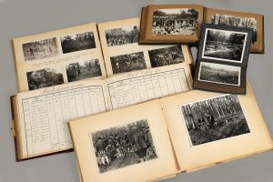 [Chasse à courre] [Photographie] [Gustave Rouland]. 4 albums (2 in-4 oblong reliés toile beige, 1 in-8 oblong simili-lézard vert, 1 in-12 percaline bleue), XXe siècle. L'ensemble réunit 296 tirages argentiques et photo-cartes illustrant des...