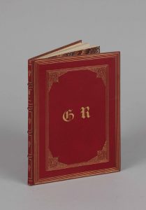 filet, le tout doré, plats décorés d'un double encadrement de filets multiple avec fleurons angulaire, le tout doré, initiales " GR " frappées au plat sup., double filet doré aux coupes, dentelle intérieure (petit frottement sur le titre au dos).