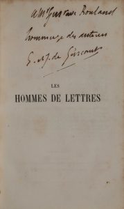 GONCOURT (E. & J. de). Les hommes de lettres. Paris, Dentu, 1860. In-12, [2] f., 562 p., demi-chagrin rouge époque, dos à 4 nerfs, auteur et titre dorés, caissons richement ornés (brunissures). Édition originale. Envoi autographe signé des...