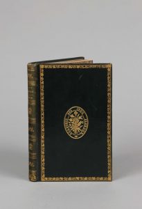 glacé époque, dos à 4 nerfs richement orné, pièce de titre basane verte, double filet doré aux plats, roulettes aux coupes et bords de contreplats, tranches rouges (dos passé).