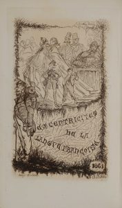 LARCHEY (Lorédan). Les excentricités du langage français. 2e éd. Paris, Bureaux de la Revue anecdotique, 1861. In-12, XV-267 pp., frontispice gravé, veau blond glacé, dos à 5 nerfs, pièce de veau glacé noir, caissons ornés, triple filet...