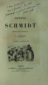 [Contes]. SCHMID (Christoph von). Contes de Schmidt. Traduction nouvelle par A. Bordot. Paris, Vermot, [1859]. Quatre parties en 2 vol. in-8, lithogr. hors-texte d'après Hadamard, demi-chagrin rouge époque, dos à 5 nerfs, titre et tomaison dorés,...